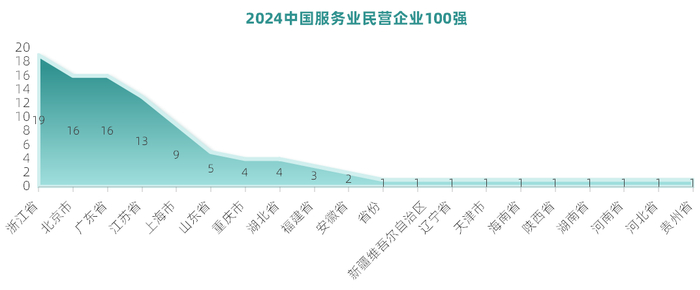从上榜企业区域分布来看,浙江上榜企业最多达19家,北京市和广东省并排第二名,上榜的企业都为16家,第三名为江苏省,上榜的企业为13家。