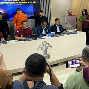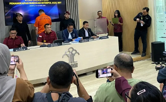 一身橙色狱服,戴着白色口罩,面对镜头,频频以手遮面,甚至以背相对,一名以“LQ”标识身份的中国逃犯在印度尼西亚雅加达的一场新闻发布会上现身;