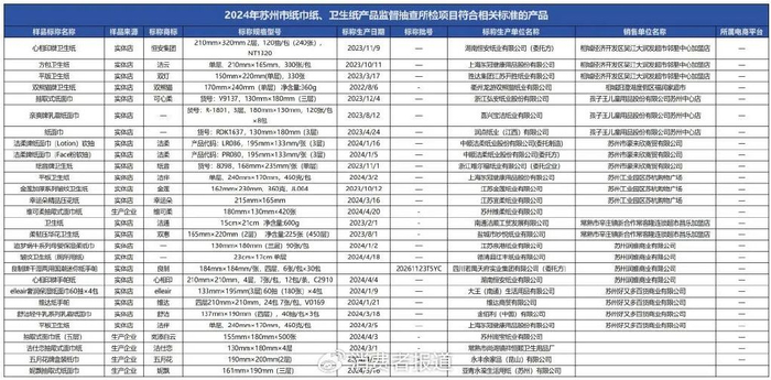 近期,苏州市市场监督管理局公布了一则纸巾纸、卫生纸产品质量市级监督抽查情况公告,具体情况如下。