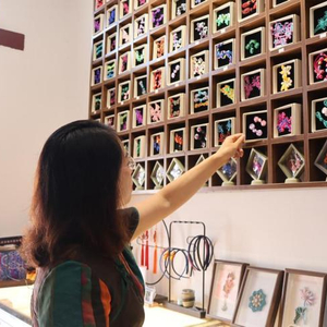 近年来,孙艳着手开展传统盘扣技艺的保护与传承工作,经她之手传承复刻、改良创新的新中式盘扣结艺有500余种。她还融合盘扣元素,制作了挂件、摆件、装饰画、胸针、耳环、项链等产品,颇受市场欢迎。
