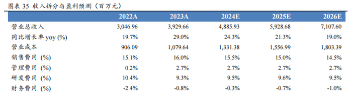 非核心收入,不作基本假设。我们预期公司 2024-2026 年其他业务的营业收入恒定为 1000 万元,营业收入同比增速分别为 3.0%、0%、0%。