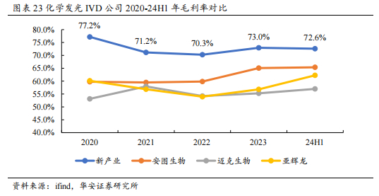 公司利润率较高,具备从容应对集采的能力。我们选取化学发光占比高的三家可比公司作对比,公司在保持收入持续、稳健增长的同时,拥有同行业最高的毛利率水平。ifind 数据显示,公司 2020-24H1 毛利率水平始终维持在 70%以上,24H1 毛利率高达 72.6%。我们认为公司较高的毛利率水平可以有效缓冲集采后可能带来的降价影响。