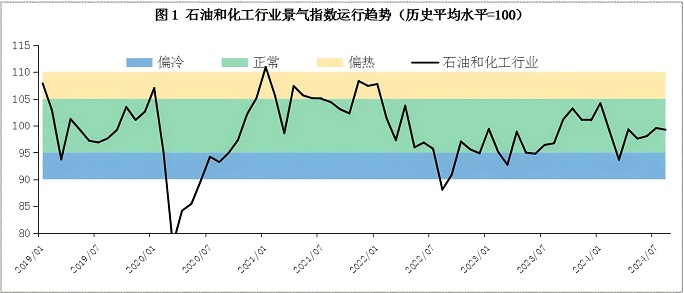 石油和化工行业景气指数由中国石油和化学工业联合会与山东卓创资讯股份有限公司联合编制,是石油化工行业的微观景气循环监控指标,包括“石油和天然气开采业景气指数”“燃料加工业景气指数”“化学原料和化学制品制造业景气指数”“橡胶、塑料及其他聚合物制品制造业景气指数”4个分指数。石油和化工行业景气指数的景气指标选择以度量行业的潜在产出和经济效益为标准,包括生产类微观数据和行业效益类数据,其中生产类微观数据包括产能利用率、产品盈利能力、产成品库存水平。基础数据来源于与千余家企业建立的定期调研评估结果。