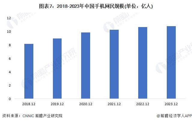 根据CNNIC数据显示,截至2023年12月,我国手机网民规模为10.79亿,较2022年12月新增手机网民超1000万人。