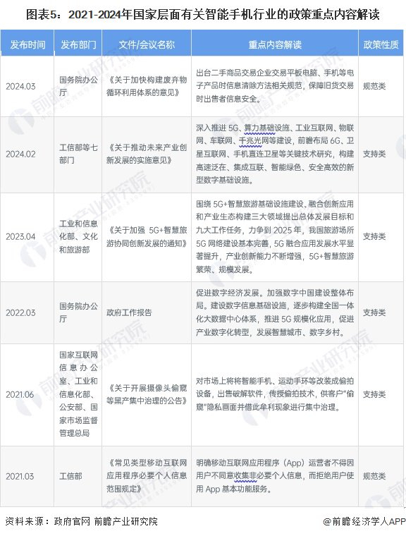 为保证智能手机行业健康快速发展,我国政府等多部门出台了众多政策来规范行业的发展。智能手机作为移动通信终端设备,其生产和销售主要受国家无线电管理相关法规约束,而移动通信终端设备产品所处的电子信息产业是我国当前着重培育和发展的战略新兴产业,智能手机行业受国家多项政策规划支持: