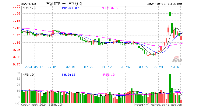 10月16日,截止午间收盘,石油ETF(561360)涨0.29%,报1.044元,成交额442.32万元。石油ETF(561360)重仓股方面,中国海油截止午盘涨0.55%,中国石油涨0.36%,中国石化涨0.15%,广汇能源涨2.31%,招商轮船涨0.28%,中远海能涨0.51%,杰瑞股份跌2.62%,卫星化学跌0.82%,恒力石化跌0.89%,荣盛石化跌1.30%。