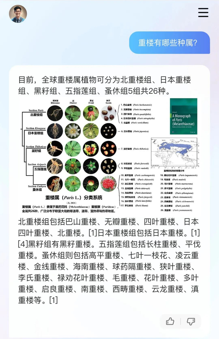 2)训练了5612种天然中药材信息说明数据,构建了中药材知识问答平台,平台赋能药研人员可便利地了解中药材的特性,包括生长环境、成分功效、炮制工艺等,有效发掘中药材的应用,推动新产品或新疗法的研发。