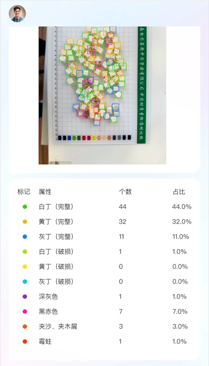 4)在中药材质量识别上,通过运用CV大模型性,训练了标注的1.5万例中药材质量数据,实现了三七、茯苓中草药的数字化质量识别。在中药材交易质量验收场景可快速识别,帮助质量部验收时做出判断;在仓库及订单中心可数字化呈现库存状态,实现仓库合理堆放,订单中心在销售上自动匹配客户需求货物。经济效益上每年可节省550万元退换货成本。在行业价值上制定了数字中药材的质量标准。