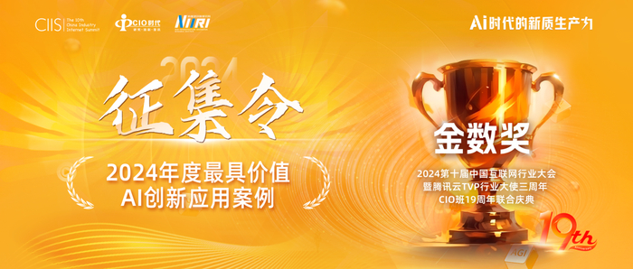 2024年10月25日-27日,由CIO时代、腾讯云TVP联合主办,新基建创新研究院作为智库支持的国内年度最大规格的CIO盛会——以“AI时代的新质生产力”为主题的“2024第十届中国互联网行业大会暨腾讯云TVP行业大使三周年 & CIO班19周年联合庆典”将于湖南·张家界重磅启幕!届时将邀请业界500+ CIO重磅嘉宾出席,带来50+演讲、30+案例、3大评选,线上线下互动全覆盖,精彩纷呈。