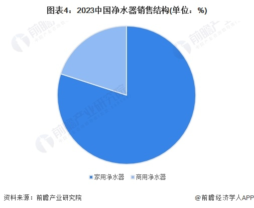 从细分市场角度来看,净水器主要分为家用净水器和商用净水器产品,随着居民消费者对健康意识的提高,居民安全卫生用水需求持续增长,家用净水器已长期成为最主要的净水器产品,占据了接近80%的市场份额。