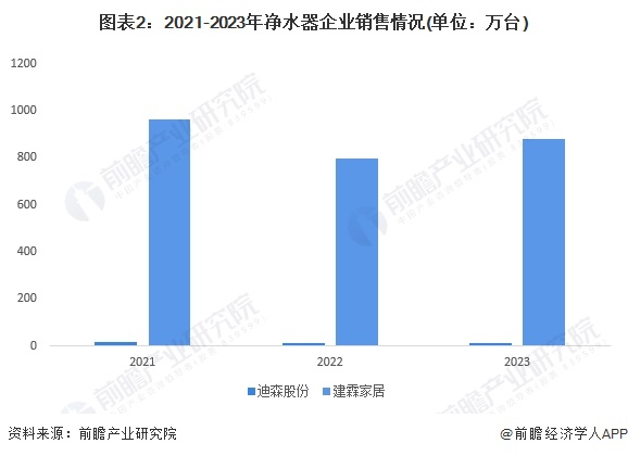 从中国净水器企业代表性相关产品销售情况来看,2021-2023年,中国净水器销量整体先上升后有所上升,净水器市场需求回暖。