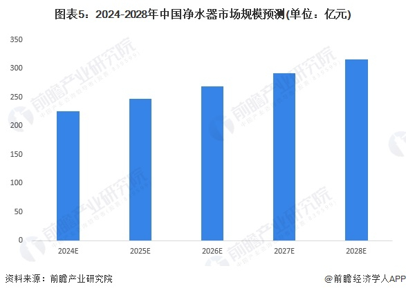 净水器产品的升级换代,消费者对用水安全意识的提升,推动中国净水器产品需求进一步增长。中国净水器市场空间较大,预计中国净水器行业市场规模将以接近9%的增速保持增长,2028年市场规模有望突破300亿元。
