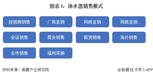 净水器产品应用广泛,面向个人消费者、企业、政府等多类主体,主要销售模式包括经销商销售、厂商直销、网络销售、会议销售、展销、租赁销售、海外销售、合作销售、福利采购等方式。