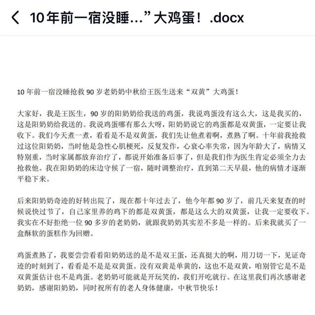 粗粗浏览了一下,视频中有相当一部分的主角是带有头衔的“白大褂”,感觉是从短视频平台下载整合而成。文案内容则是互联网内容集纳,有的是科普,却没有出处,讲述的内容似是而非,漏洞百出;有的是“感人故事”,比如治好了90岁的老奶奶,老奶奶送来了很多双黄蛋……这些文案都以“我”的口吻进行了改写,如果和视频结合,还真像“医生”在进行科普或讲述。可是,1元钱买的内容经过剪辑,能相信吗?