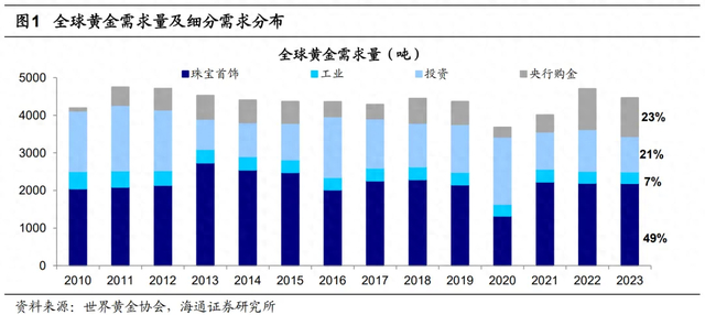 今年以来金价迭创新高,投资者对黄金资产的关注度逐渐提高。拉长时间来看,这轮金价上行前的最低点出现在2015年底,不过15/12-18/07金价总体横盘震荡,黄金价格趋势性上行始于2018年8月。本轮黄金牛市的前半段(18/08-20/09)主要由避险属性和货币属性主导;后半段(22年至今)金价与美国实际利率、美元指数等高相关指标出现背离,这背后是美元信用下降背景下,央行大幅购金以优化官方储备资产的结构,货币属性呈现了新特征。