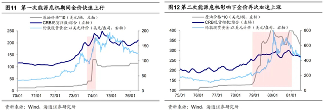 第二驱动力是商品属性,70年代大宗商品牛市助力金价冲高。70年代两次能源危机冲击使得以石油为代表的大宗商品面临供需失衡的格局,进一步带动包括黄金在内的大宗商品集体涨价:73/10第一次石油危机爆发后,欧佩克宣布石油提价并中止向欧美等地出口,73/10-74/03国际油价最大涨幅为217%,金价同样迎来较为明显的上涨,同期最大涨幅为99%;78/10第二次能源危机愈演愈烈,78/10-81/03期间国际油价最大涨幅为218%,这一期间黄金价格跟随石油等大宗商品加速上行,伦敦金最大涨幅为294%。