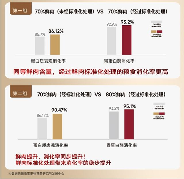 为此弗列加特率先自研“鲜肉标准化处理系统”,在不破坏肉质组织和细胞的前提下去除多余水分,使干粮的鲜肉纯度更高达80%;并通过自主研发的“低温真空鲜肉浓缩工艺” 专利,将蛋白先进行“预消化",提高蛋白利用率和消化吸收速率,精准匹配不同场景、不同年龄阶段宠物的营养需求。