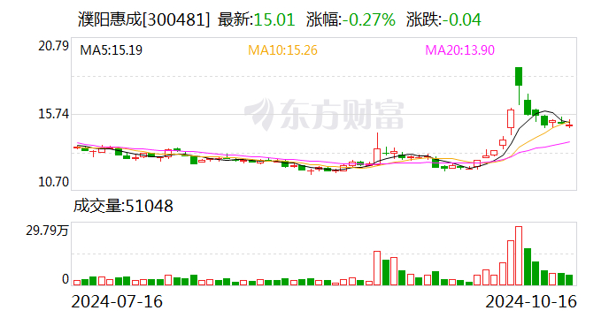濮阳惠成(300481.SZ)10月16日在投资者互动平台表示,福建惠成新材料有限公司项目暂未投产