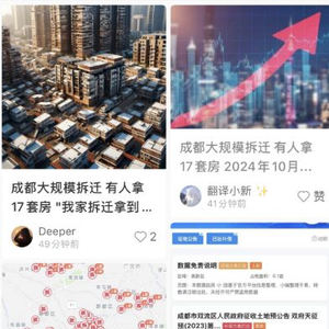 同时,一张“成都拆迁图”也在网络开始流传,显示成都多地进行拆迁,并有部分网民表示获赔偿款超千万,一夜暴富。