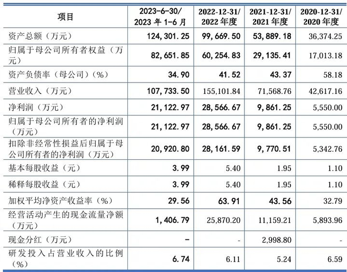 报告期内,公司营业收入分别为 42,617.16 万元、71,568.76 万元、155,101.84 万元和 107,733.50 万元;归属于母公司股东的净利润分别为5,550.00 万元、9,861.25 万元、28,566.67 万元和 21,122.97 万元,呈现持续增长趋势。2023 年第三季度,受欧洲库存消化、电力价格回落、利率大幅上涨等因素影响,欧洲户用光储产品需求不及预期,导致公司第三季度销售收入2.03 亿元,同比减少51.94%,实现净利润-1,772.91万元,同比由盈转亏。