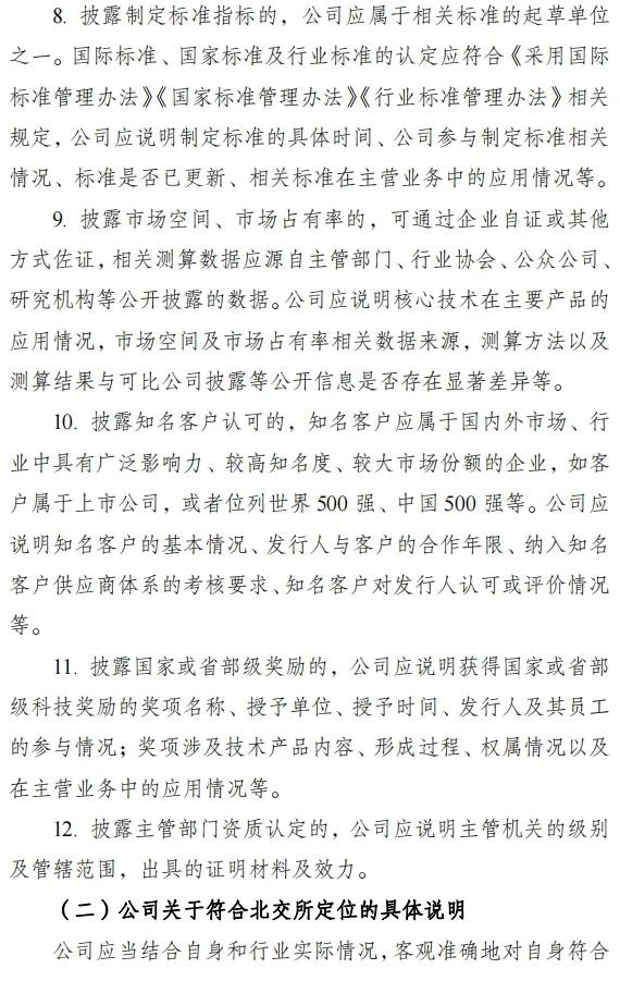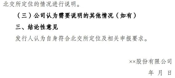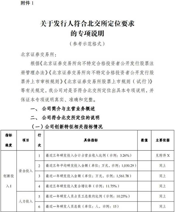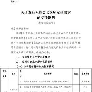 1、发行人应当按照附件所列格式要求,提交关于发行人符合北交所定位的专项说明;