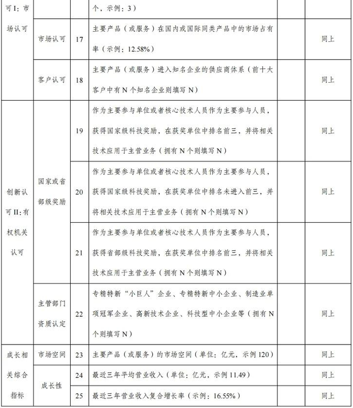 包括参与制定国际标准、国家标准或行业标准,产品在国内或国际市场占有率,与国内或国际知名企业建立稳定合作关系,获得省部级以上科技奖项或资质认定等;