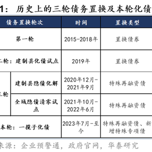 我们在2024年9月发布的《政策加码下的化债再观察》中详细梳理了本轮化债周期中的政策脉络与地方化债现状,在2023年6月发布的《地方债务置换的历史复盘与启示》中亦总结过“隐性债务”的来源与定义、历史上的三轮债务置换。综合来看,本次财政部提出的大规模隐债置换,是对于2028年隐债清零要求的落实,也是对于地方政府债务负担的减轻,有利于地方化解存量债务、消化拖欠企业账款、后续以杠杆形式继续撬动经济增长,亦是本轮化债周期中已发行的1.5万亿元特殊再融资债、1.13万亿元新增特殊专项债的政策延续。