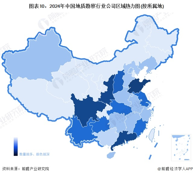 从区域分布情况来看,中国地质勘察企业主要分布在广东、四川、陕西、山东等地区。中国地质勘察企业区域分布十分分散。