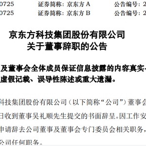10月15日,我国面板龙头京东方再次披露一则高级管理人员辞职的公告,距离上次公布高管离职公告尚不足一个月,截至公告日,今年京东方已累计发布七则高管辞职公告,共涉及七名高管。
