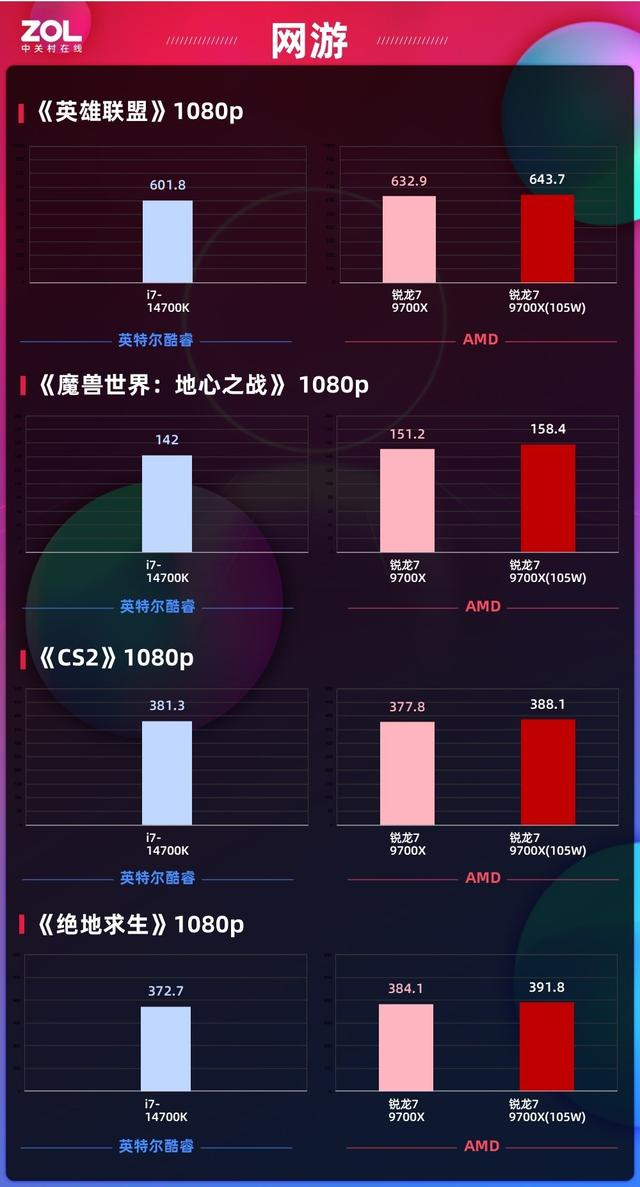 105W功耗释放性能拉满 锐龙7 9700X网游对比酷睿i7-14700K