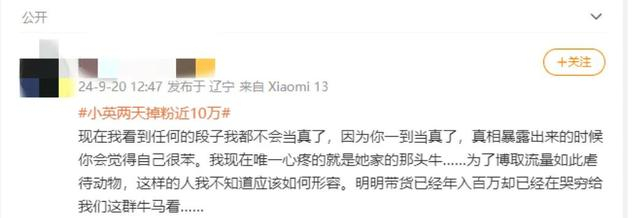 9月下旬,网上出现了质疑她“虚假人设”“剧本卖惨”“送养孩子”的声音,甚至还说她“开着路虎去种地”,让她不知所措,倍感委屈,只好暂停了更新视频。