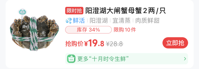 “现在已经进入了螃蟹的大量上市季,接下来还有下降空间。尤其是中小规格的螃蟹性价比更高。”
