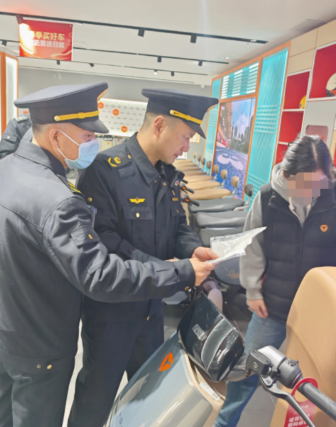 2024年3月4日,徐州市睢宁县市场监管局依法对睢宁县官山镇某电动车经营部进行检查,发现其经营部展厅待售的1台五羊牌电动自行车,型号为TDT613Z,产品合格证标示的蓄电池类型为锂电。而在现场准备销售时,当事人装入的却是铅酸电池,且电池储存仓的接线及储存仓样式无法匹配相应的锂电池。该局执法人员当场制止当事人的改装行为。
