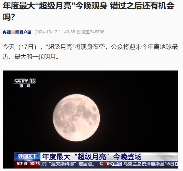 IT之家 10 月 17 日消息,据央视新闻报道,今晚“超级月亮”将现身夜空,公众将迎来今年离地球最近、最大的一轮明月。19 时 26 分,月球将迎来满月时刻,也就是天文学上的“望日”。