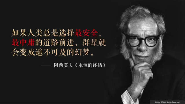阿西莫夫在《永恒的终结》中写道:如果人类总是选择最安全最中庸的道路前进,群星就会变成遥不可及的幻梦。我的朋友们,尤其是年轻一代,希望你们都能看到趋势、积极拥抱趋势,最大限度地发挥想象力和创造力,在AI时代屹立潮头,为中国赢得这次科学范式的先机!我和华大也会和你们一起努力,在生命科学和生物技术产业为人类持续作出引领性、奠基性贡献。