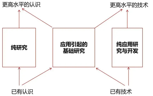 第四个关键点:2016年,还是美国的卡特希·那拉亚那穆提所写的《发明与发现:反思无止境的前沿》。这本书提出了与前作相反的意见,认为基础研究与应用研究的传统分类观阻碍国家的科学与技术进步,导致许多无用的政策建议。他提出研究作为一个整体,是一个不断在发明与发现之间切换的联系过程。而将研究活动划分为“基础研究”和“应用研究”,并且简化为线性联系,割裂了研究的整体性、综合性和相关性,是一种未能正确反映客体的主观判断。