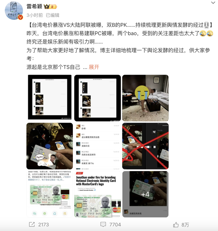 10月17日,网友@雷希颖 在微博发文,疑似易建联嫖娼被曝光,并晒出相关聊天记录和图片,其中包括疑似易建联本人的身份证图片。