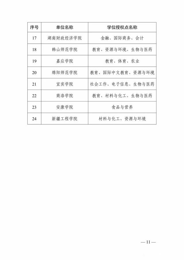 2023年度审核增列的博士、硕士学位授予单位及其新增学位授权点名单如下: