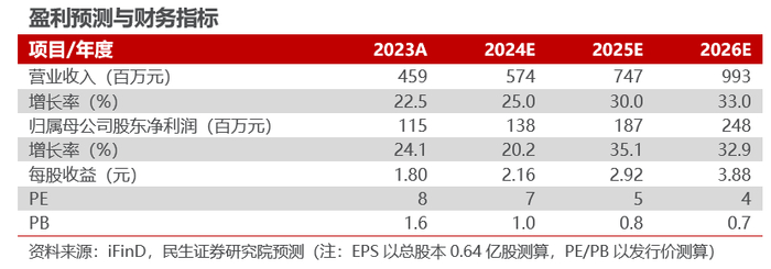 公司是稀缺的AI+农业领军者,通过运用物联网、人工智能、大数据等新一代信息技术与农业深度融合,主要采用布局智能硬件设备、搭建农业物联网项目、建设信息化软件平台项目的综合服务形式,为农业领域相关的政府部门、企事业单位、科研院校等提供数据采集、分析决策、精准执行、科学管理服务,未来有望伴随智慧农业持续普及迎来快速成长期。根据公司招股说明书,选取客户属性与业务形态具有一定相似性的理工能科、山大地纬进行对比,以2024年10月16日的收盘价计算,2家公司的2024/2025/2026年的PE均值为29/23/18倍。我们预计公司2024/2025/2026年的EPS分别为2.16/2.92/3.88元/股,以发行价测算,公司2024/2025/2026年的PE为7/5/4倍,估值仍有提升空间。