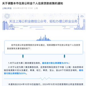 上海楼市,新政发布!10月18日起调整住房公积金个人住房贷款政策
