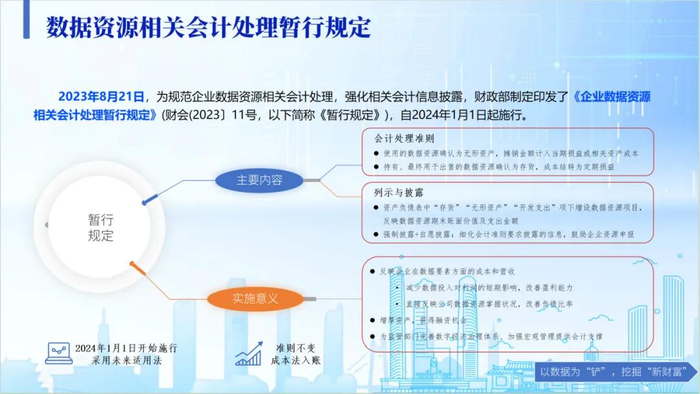 《企业数据资源相关会计处理暂行规定》基于会计准则适用范围的新视角对企业的数据资源做了进一步划分,包括企业按照企业会计准则相关规定确认为无形资产或存货等资产类别的数据资源,以及企业合法拥有或控制的、预期会给企业带来经济利益的、但由于不满足企业会计准则相关资产确认条件而未确认为资产的数据资源。