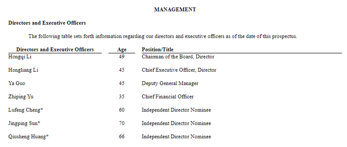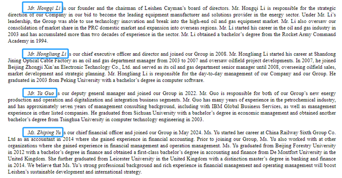 招股书显示,雷神能源的管理层如下: