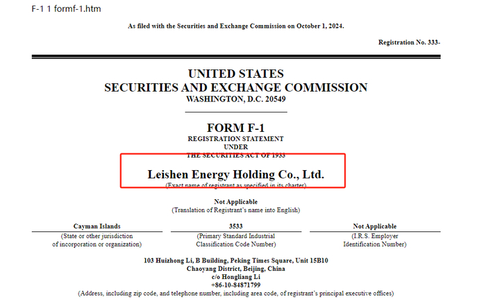 近日,来自北京的华油蓝海油气技术开发有限公司的实质控股公司Leishen Energy Holding Co., Ltd.雷神能源控股有限公司(以下简称雷神能源)在美国证券交易委员会(SEC)更新招股书,拟于美国纳斯达克上市,股票代码为“LSE”。 其于2023年8月24日在SEC秘密递表。