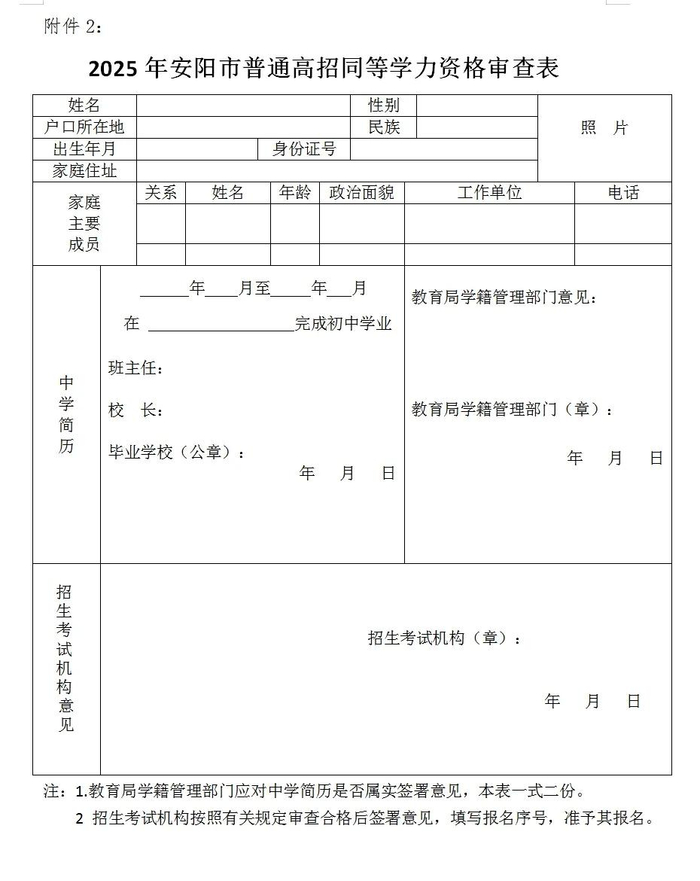 2025年安阳市市区社会考生普通高等学校招生报名须知