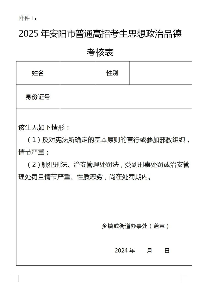2.往年已被院校录取的考生:需提供本人身份证、户口薄、毕业证原件复印件及未报到证明、退学证明或当年准考证及录取通知书原件、《思想品德考核表》(附件1)。