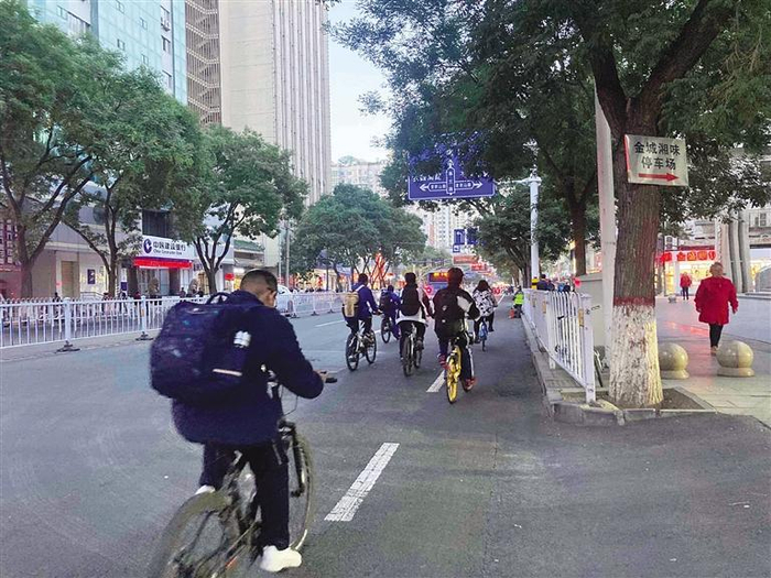 此外,放学路上,骑行的学生与机动车抢道、拐弯不减速、十字路口交通灯转换瞬间抢行等等现象,都让人捏把冷汗。