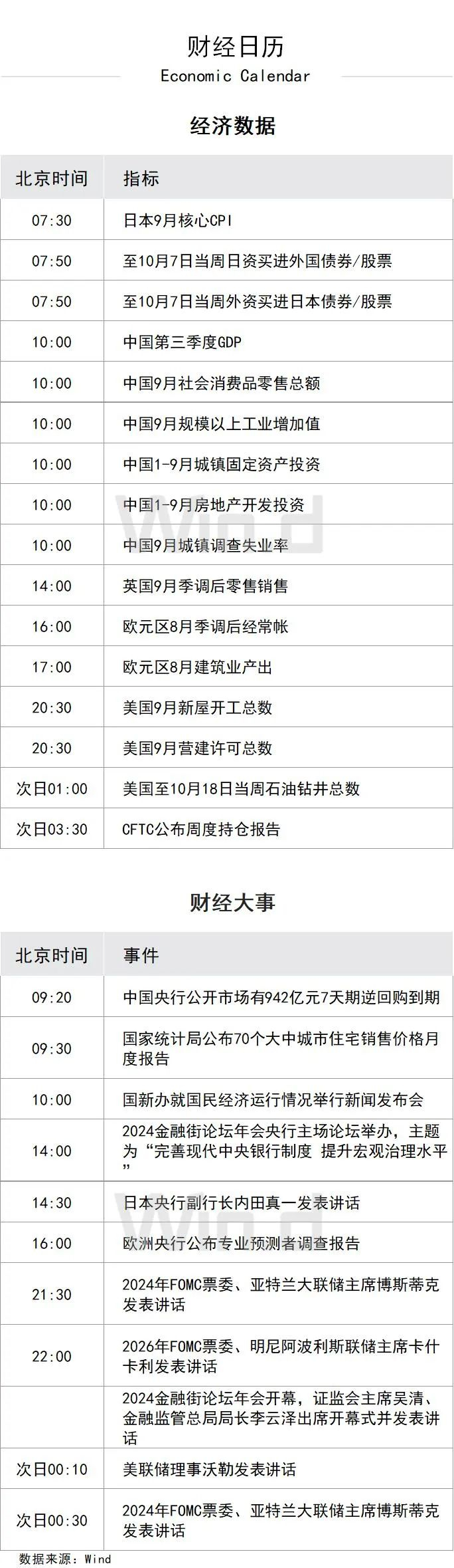 5、央行副行长陶玲表示,预计大部分存量房贷利率将在10月25日批量调整完成,部分中小银行完成调整的时间可能略晚,总体预计会在10月31日前全部完成。
