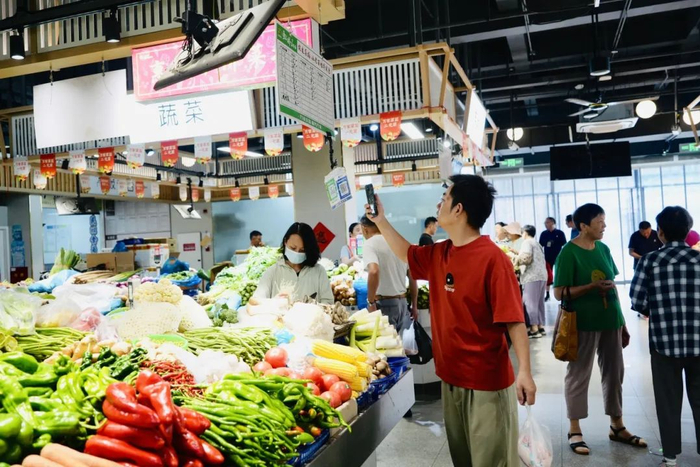 目前,菜场已有18家商户进驻,涵盖蔬菜、肉类、水产等居民日常所需食材。改造后的农贸市场以“智慧型农贸集市”+“多业态组合”全新理念,打造邻里市集。届时,除了有2000平方米和68个摊位的菜场外,还将有网红商品、老字号食品、品牌餐饮以及宾馆、娱乐等一些业态,进一步完善丰富周边社区15分钟便民生活圈的内容。