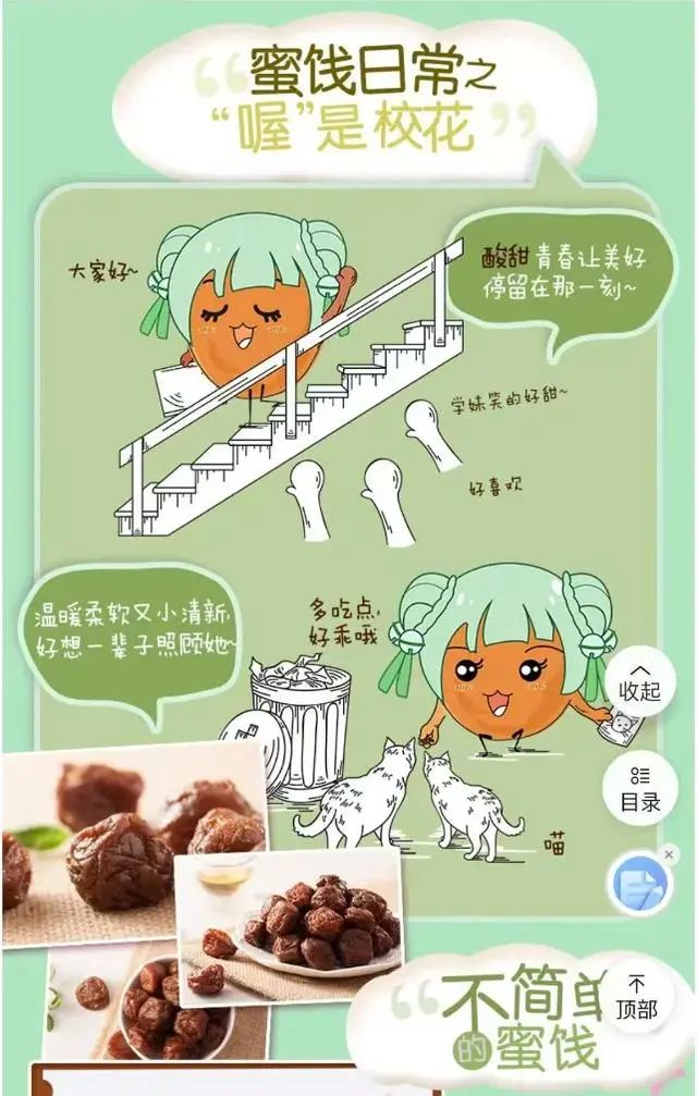 而在商品详情页,品牌以蜜饯日常之“喔”是校花制作了宣传漫画。