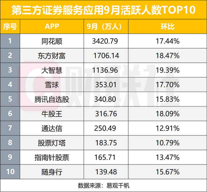 财联社10月18日讯(记者 陈俊兰)毫无疑问,9月起,券商APP的活跃度将进入一个飞升阶段。